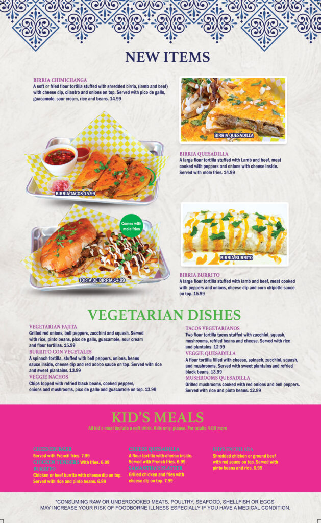 Discover a variety of authentic Mexican dishes crafted with the finest ingredients. From traditional favorites to unique gourmet creations, our menu offers something to satisfy every palate. Dive in and find your next favorite meal!
